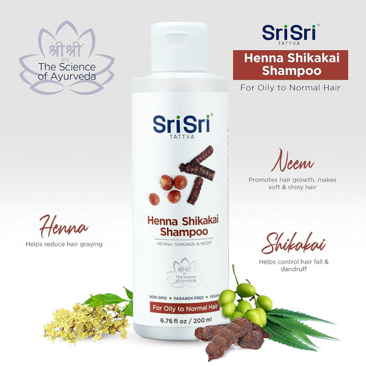 SRI SRI TATTVA Shikakai Henna Shampoo - Natural Ayurvedic Scalp Cleanser for Silky, Conditioned, Thick, Shiny Hair - Fights Dandruff Buildup (200 ml)